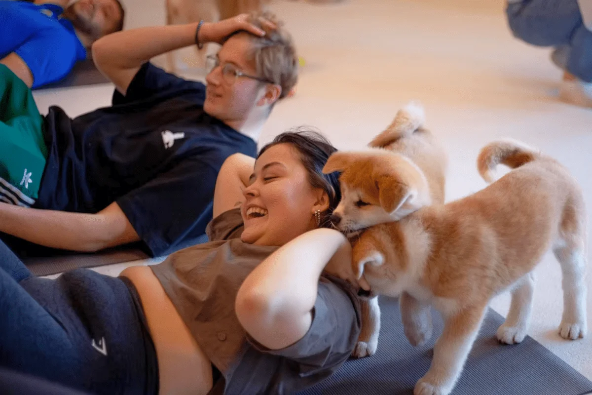 Du yoga… avec des chiots ? C’est le concept proposé par Puppy Yoga, à Lyon dans le 8ème arrondissement. Le principe est simple et irrésistible : vous suivez une séance de yoga classique, guidé par un coach, pendant que des chiots se baladent librement dans la salle. Ils viennent s’installer sur votre tapis, jouer avec vos lacets ou même s’endormir à côté de vous. On ressort de cette expérience à la fois détendu physiquement et boosté émotionnellement.