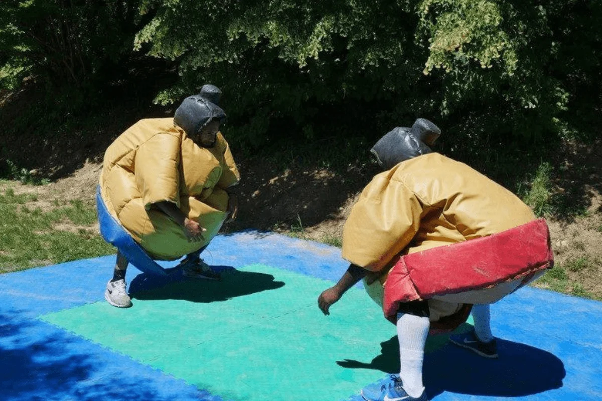 Envie de voir vos potes se transformer en sumo pendant votre EVG/EVJF lyonnais ? Direction Loisirs Motorsport à Anse, à seulement 25 minutes de Lyon, pour un combat de sumos gonflables totalement absurde… et absolument génial. Une fois enfilés dans leurs énormes costumes rembourrés, les participants roulent, trébuchent, se bousculent et tentent tant bien que mal de faire sortir l’adversaire du tatami. C’est impossible à prendre au sérieux et c’est justement pour ça qu'on ne pouvait pas ne pas en parler ici.
